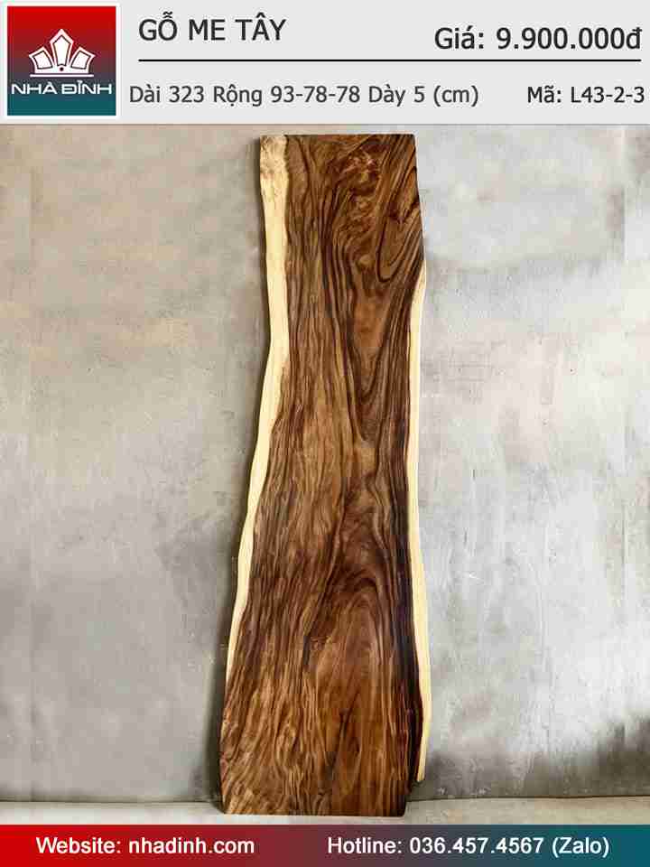 Mặt Bàn Gỗ Me Tây Nguyên Khối Dài 323 Rộng 93-78-78 Dày 5 (cm)