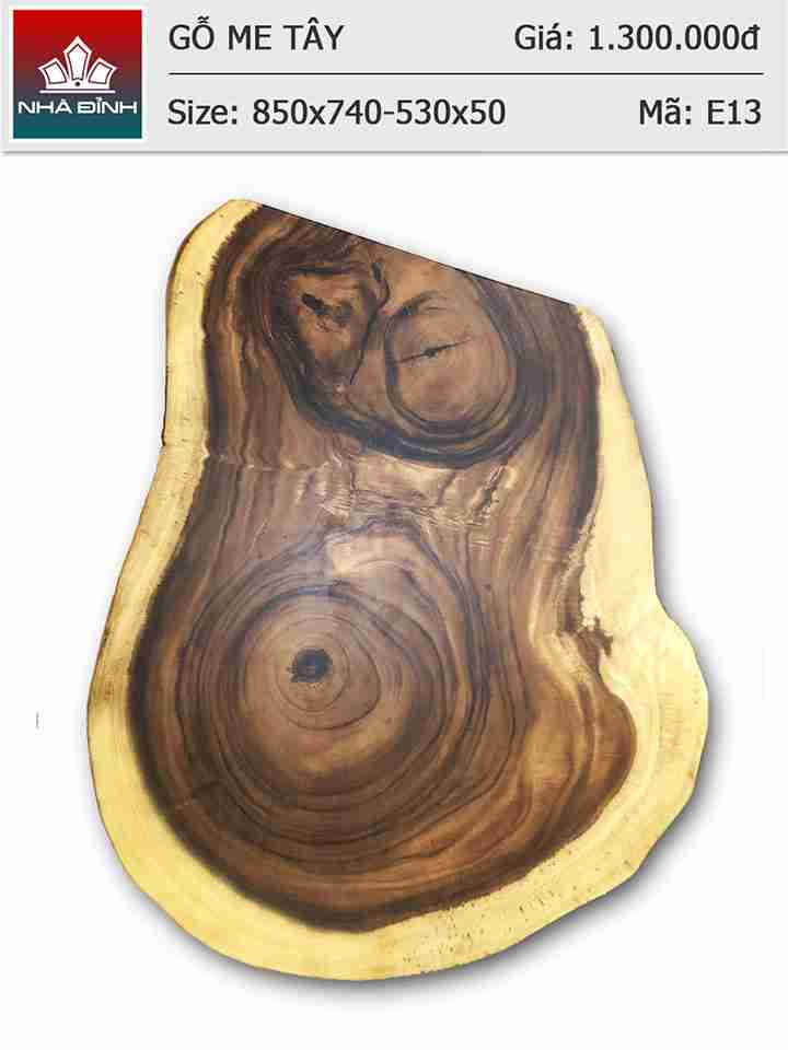 Mặt bàn gỗ Me Tây nguyên khối dài 85 rộng 74 - 53 dày 5 (cm)