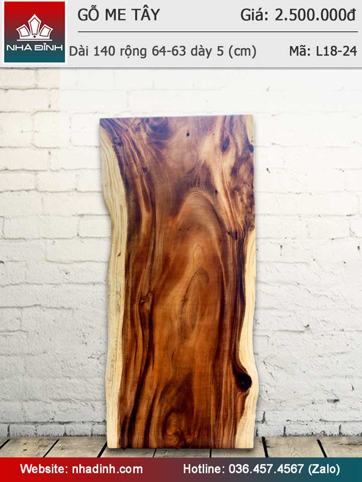 Mặt bàn gỗ Me Tây nguyên khối dài 140 rộng 64-63 dày 5 (cm)