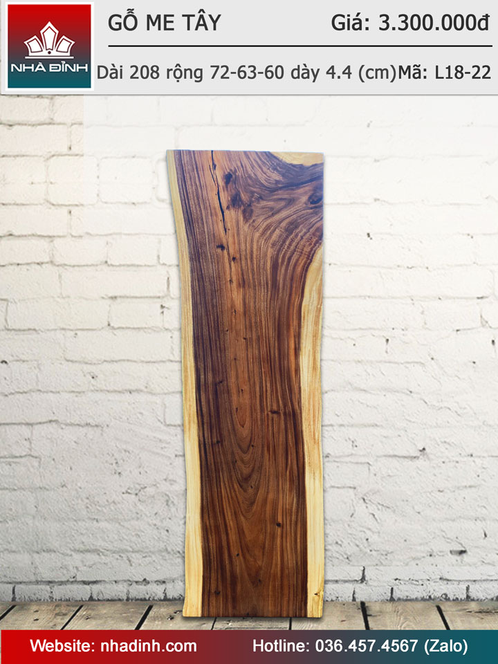 Mặt bàn gỗ Me Tây nguyên khối dài 208 rộng 72-63-60 dày 4.4 (cm)