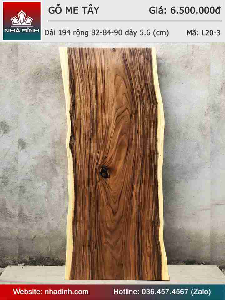Mặt Bàn Gỗ Me Tây Nguyên Khối Dài 194 Rộng 79-80-87 Dày 5.6 (cm)