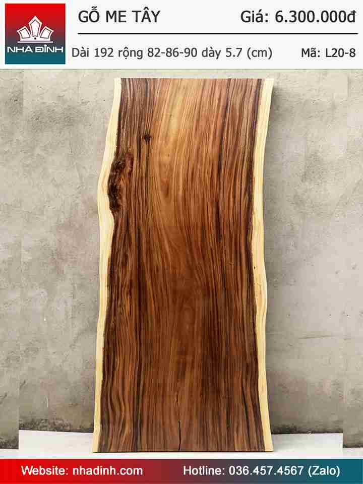 Mặt Bàn Gỗ Me Tây Nguyên Khối Dài 192 Rộng 82-86-90 Dày 5.7 (cm)