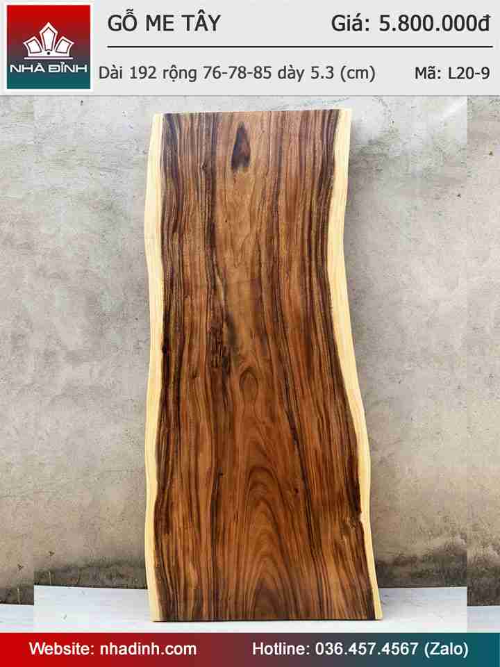 Mặt Bàn Gỗ Me Tây Nguyên Khối Dài 192 Rộng 76-78-85 Dày 5.3 (cm)