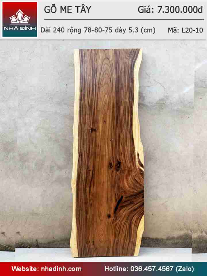 Mặt Bàn Gỗ Me Tây Nguyên Khối Dài 240 Rộng 78-80-75 Rộng 5.3 (cm)