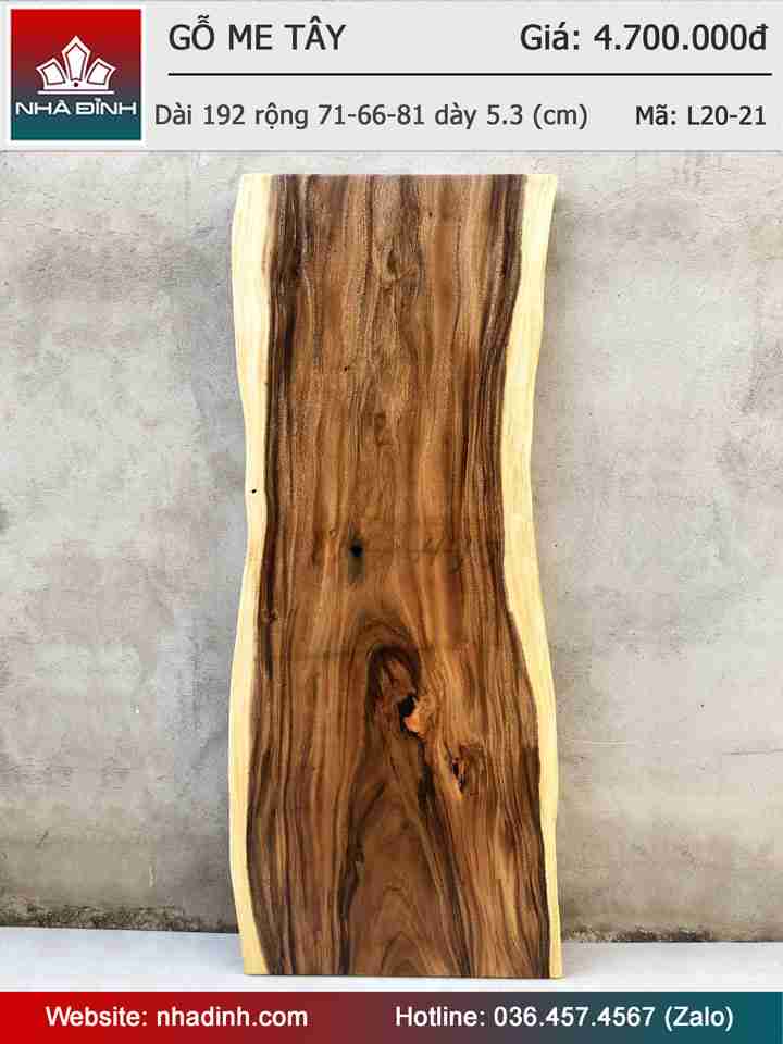 Mặt Bàn Gỗ Me Tây Nguyên Khối Dài 192 Rộng 71-66-81 Dày 5.3 (cm)