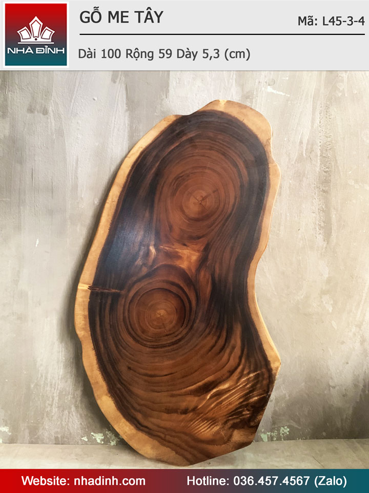 Mặt Bàn Gỗ Me Tây Nguyên Khối Dài 100 Rộng 59 Dày 5,3 (cm)