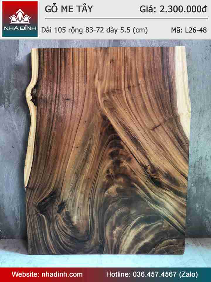 Mặt Bàn Gỗ Me Tây Nguyên Khối Dài 105 Rộng 83-72 Dày 5,5 (cm)