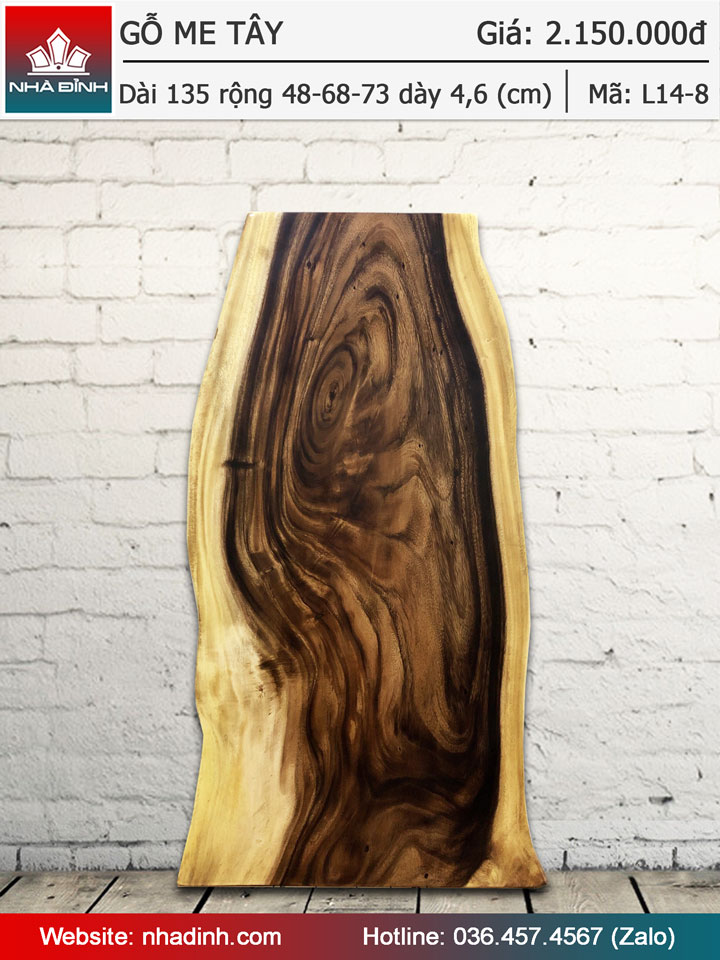 Mặt bàn gỗ Me Tây nguyên khối dài 135 rộng 48-68-73 dày 4,6 (cm)