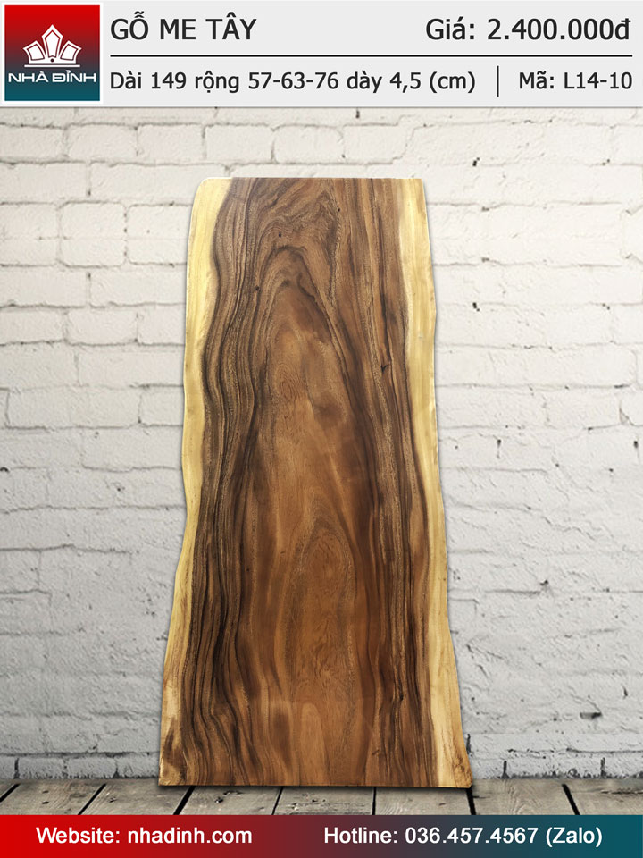 Mặt bàn gỗ Me Tây nguyên khối dài 149 rộng 57-63-76 dày 4,5 (cm)