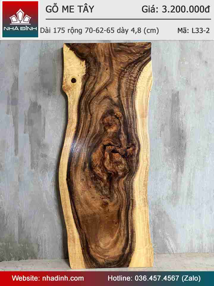 Mặt Bàn Gỗ Me Tây Nguyên Khối Dài 175 Rộng 70-62-65 Dày 4,8 (cm)