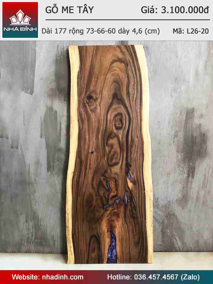 Mặt Bàn Gỗ Me Tây Nguyên Khối Dài 177 Rộng 73-66-60 Dày 4,6 (cm)