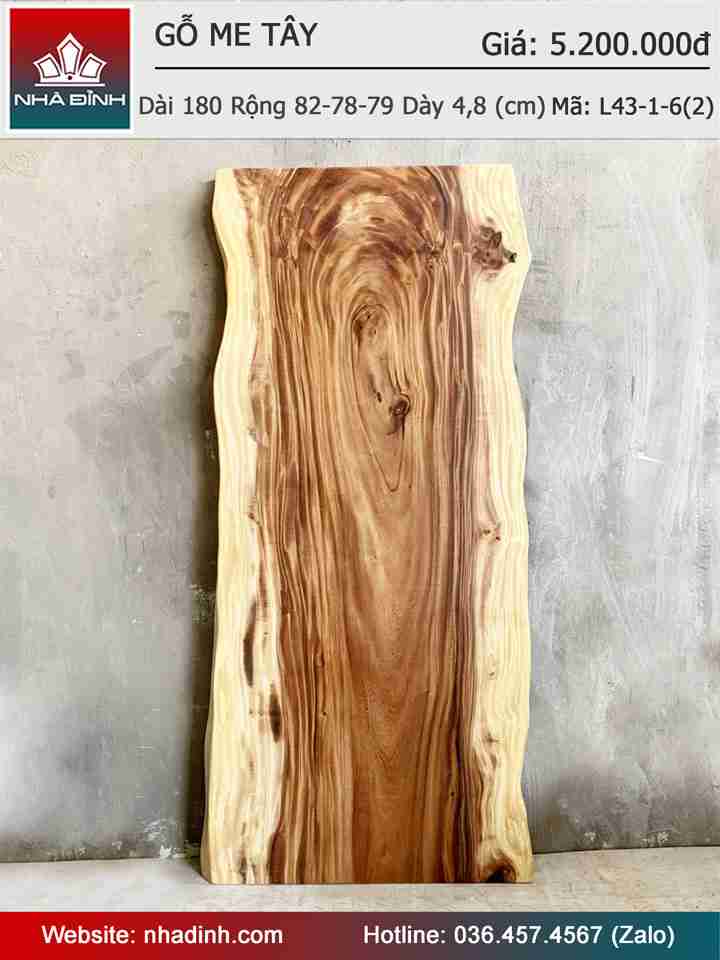 Mặt Bàn Gỗ Me Tây Nguyên Khối Dài 180 Rộng 82-78-79 Dày 4,8 (cm)