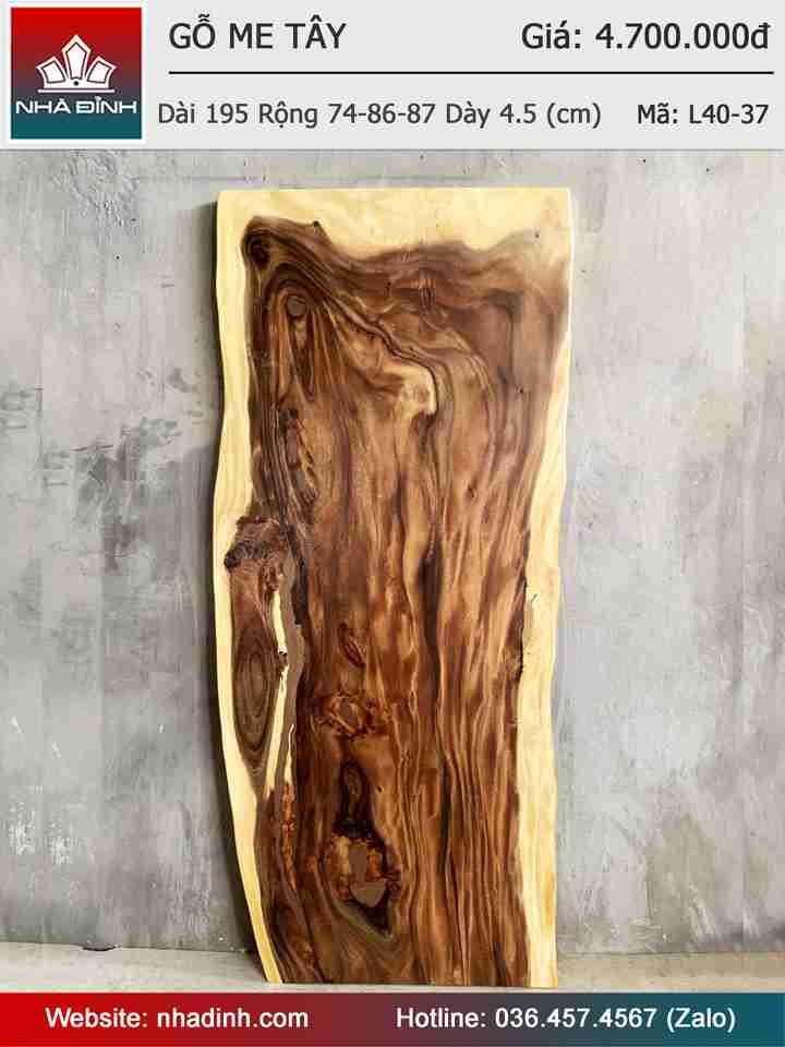 Mặt Bàn Gỗ Me Tây Nguyên Khối Dài 195 Rộng 74-86-87 Dày 4,5 (cm)
