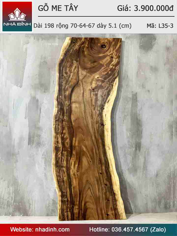 Mặt Bàn Gỗ Me Tây Nguyên Khối Dài 198 Rộng 70-64-67 Dày 5,1 (cm)