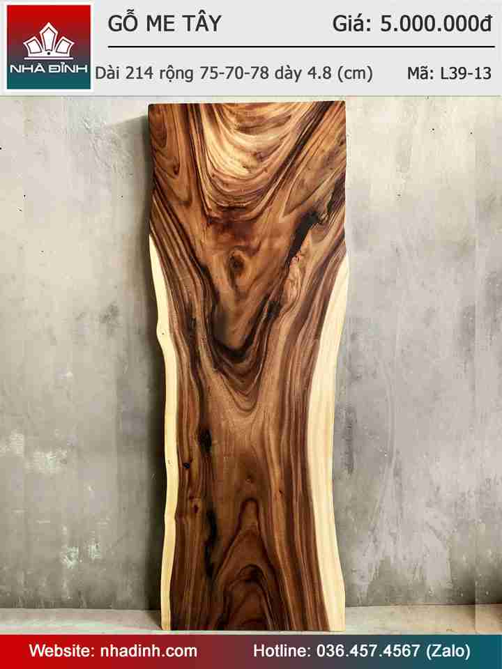 Mặt Bàn Gỗ Me Tây Nguyên Khối Dài 214 Rộng 75-70-78 Dày 4,8 (cm)