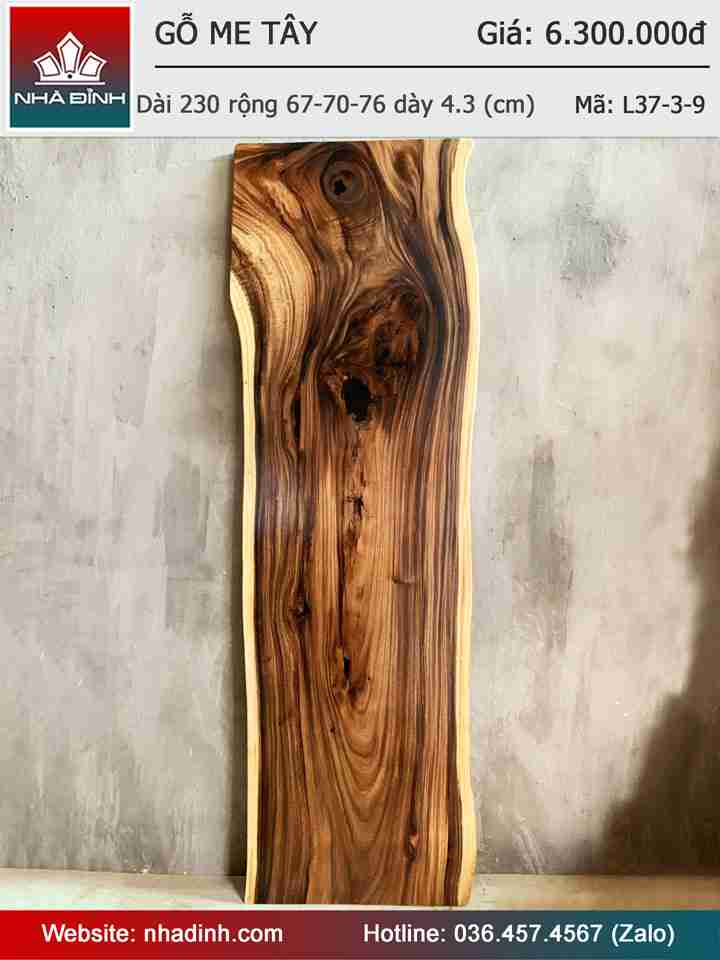 Mặt Bàn Gỗ Me Tây Nguyên Khối Dài 230 Rộng 67-70-76 Dày 4,3 (cm)