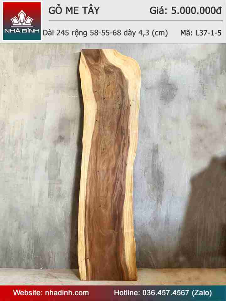 Mặt Bàn Gỗ Me Tây Nguyên Khối Dài 245 Rộng 58-55-68 Dày 4,3 (cm)