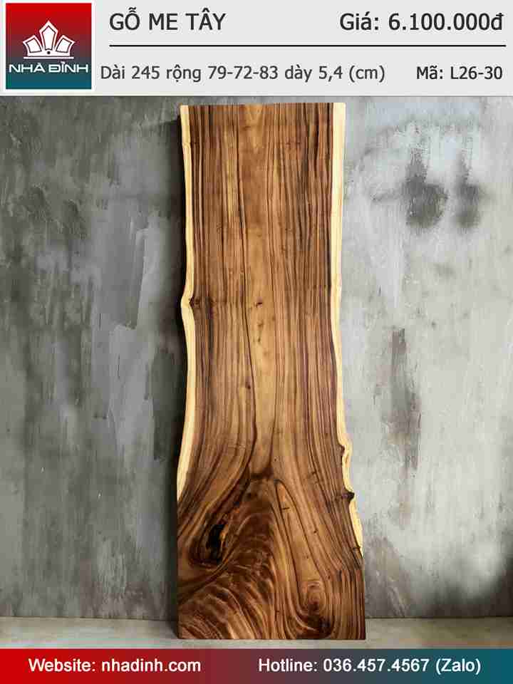 Mặt Bàn Gỗ Me Tây Nguyên Khối Dài 245 Rộng 78-72-83 Dày 5,4 (cm)