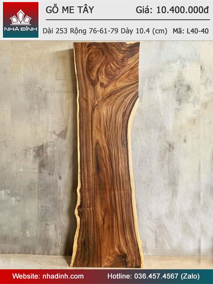 Mặt Bàn Gỗ Me Tây Nguyên Khối Dài 253 Rộng 76-61-79 Dày 10,4 (cm)