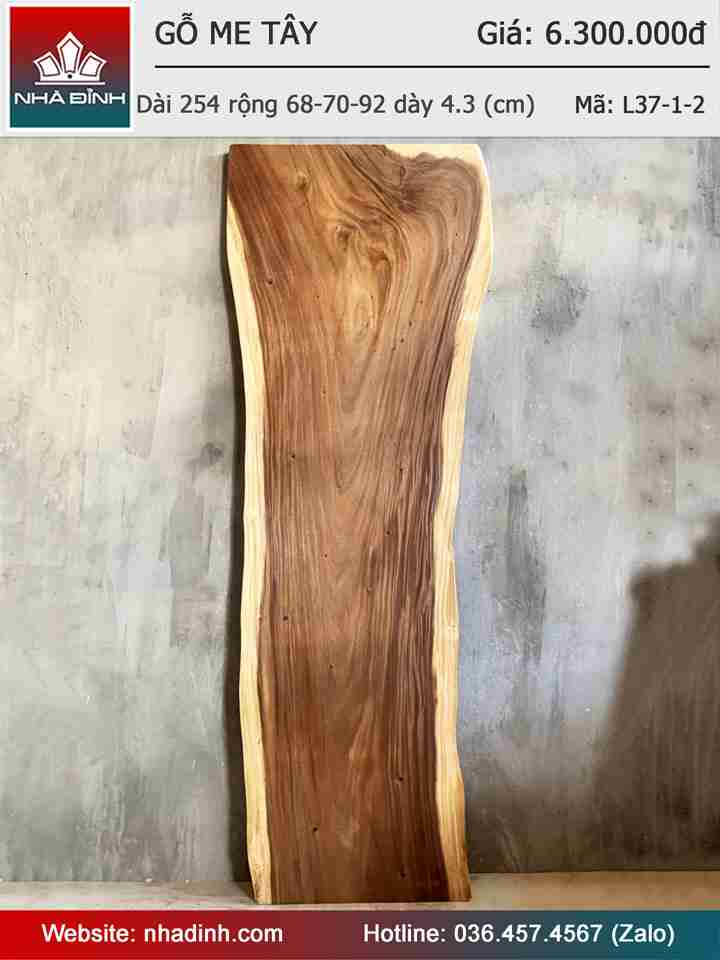 Mặt Bàn Gỗ Me Tây Nguyên Khối Dài 254 Rộng 68-70-92 Dày 4,3 (cm)