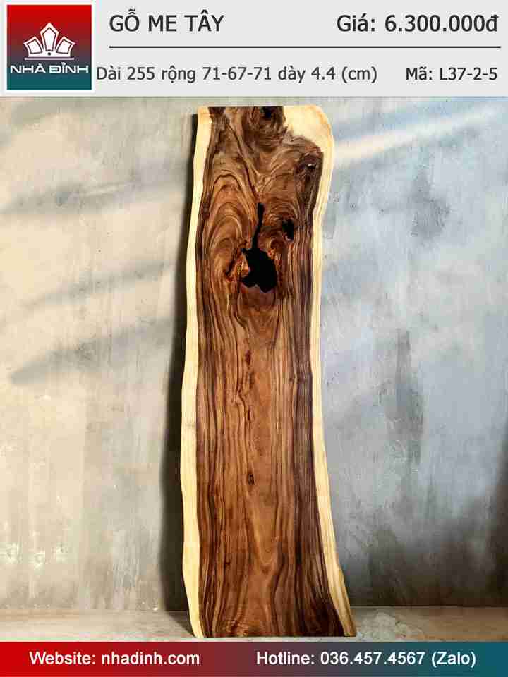 Mặt Bàn Gỗ Me Tây Nguyên Khối Dài 255 Rộng 71-65-71 Dày 4,4 (cm)