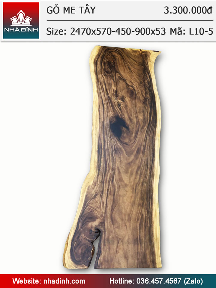 Mặt bàn gỗ Me Tây nguyên khối dài 2m47 rộng 54-45-90 dày 5,3 (cm)