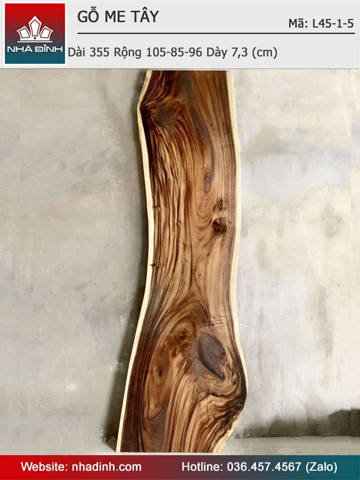 Mặt Bàn Gỗ Me Tây Nguyên Khối Dài 355 Rộng 105-85-96 Dày 7,3 (cm)