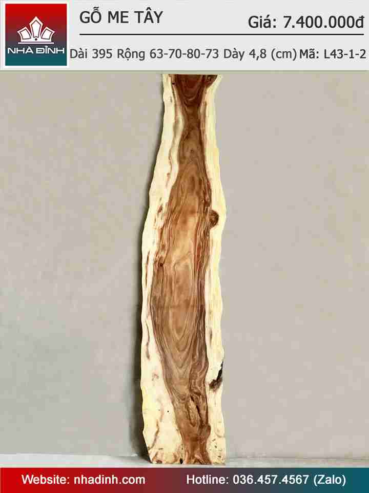 Mặt Bàn Gỗ Me Tây Nguyên Khối Dài 395 Rộng 63-70-80-73 Dày 4,8 (cm)