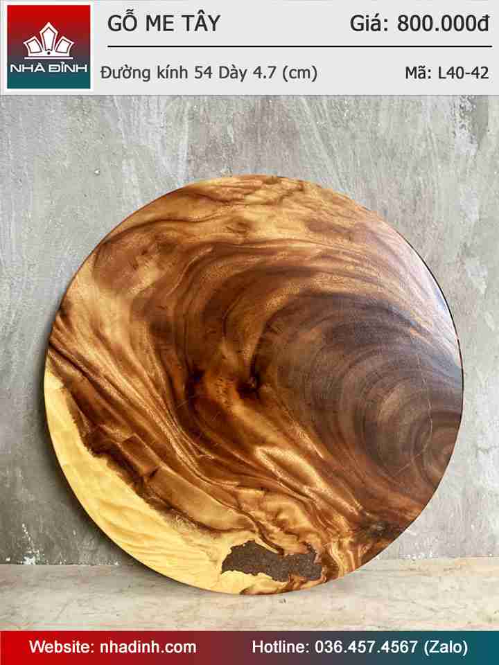 Mặt Bàn Gỗ Me Tây Nguyên Khối Đường Kính 54 Dày 4,7 (cm)