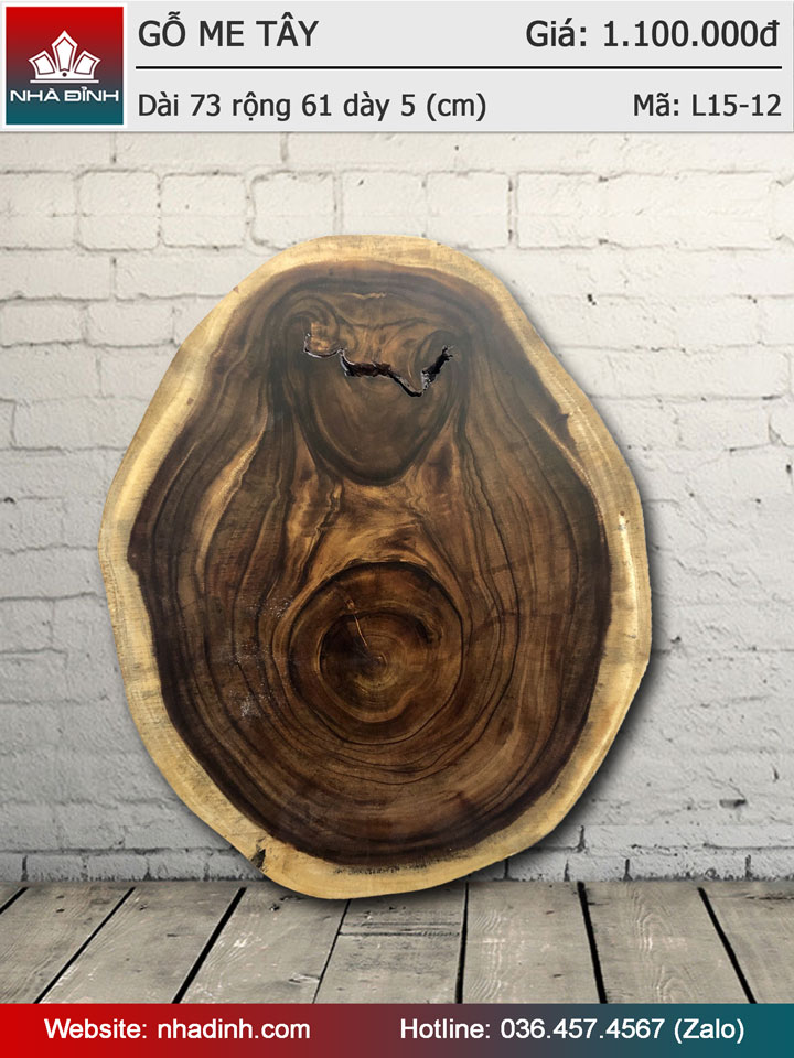 Mặt bàn gỗ Me Tây nguyên khối đường kính 730-610 dày 50 (mm)