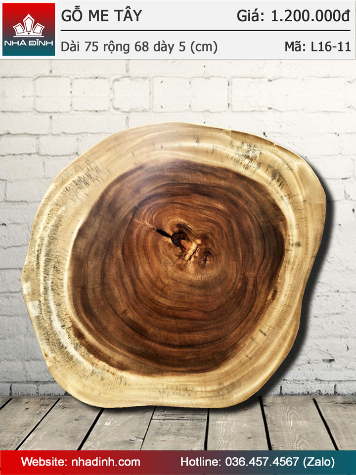 Mặt bàn gỗ Me Tây nguyên khối đường kính 750x680 dày 50 (mm)