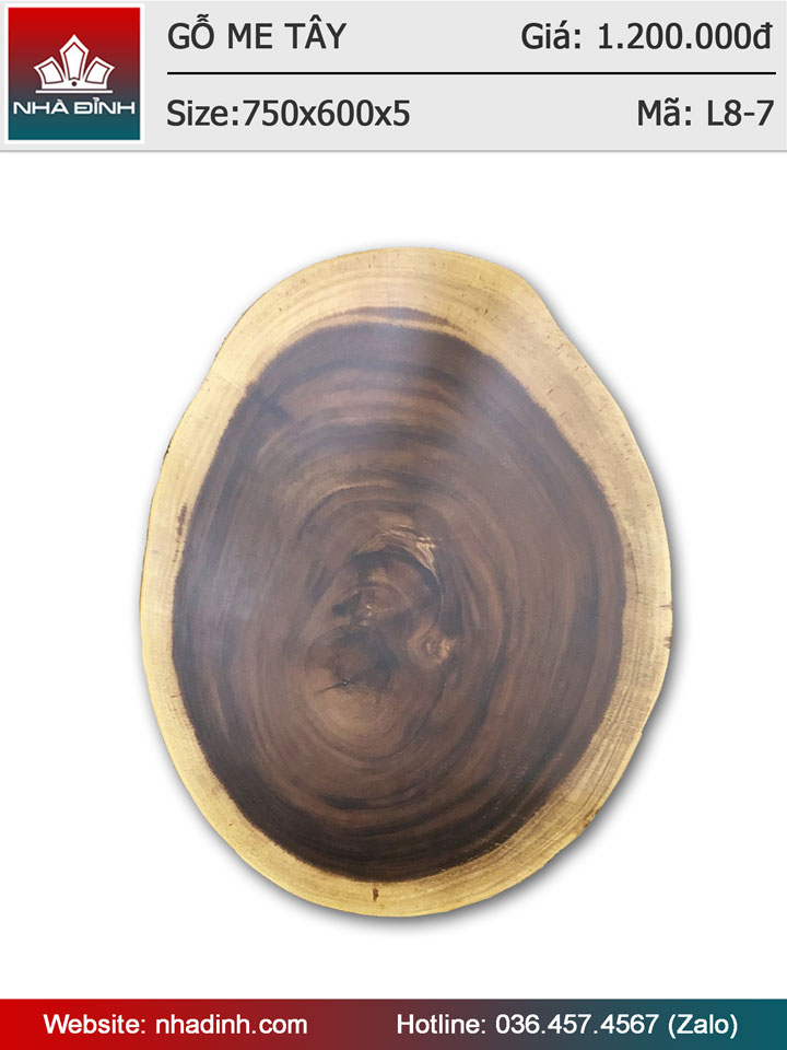 Mặt bàn gỗ Me Tây nguyên khối đường kính 75x60 dày 5 (cm)