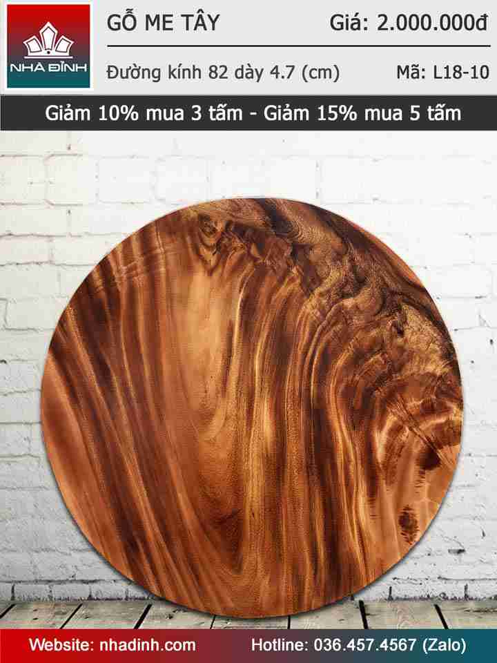 Mặt bàn gỗ Me Tây nguyên khối đường kính 82 dày 4,7 (cm)