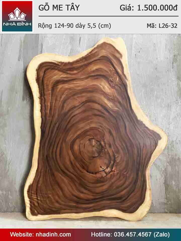 Mặt Bàn Gỗ Me Tây Nguyên Khối Rộng 124-90 Dày 5,5 (cm)