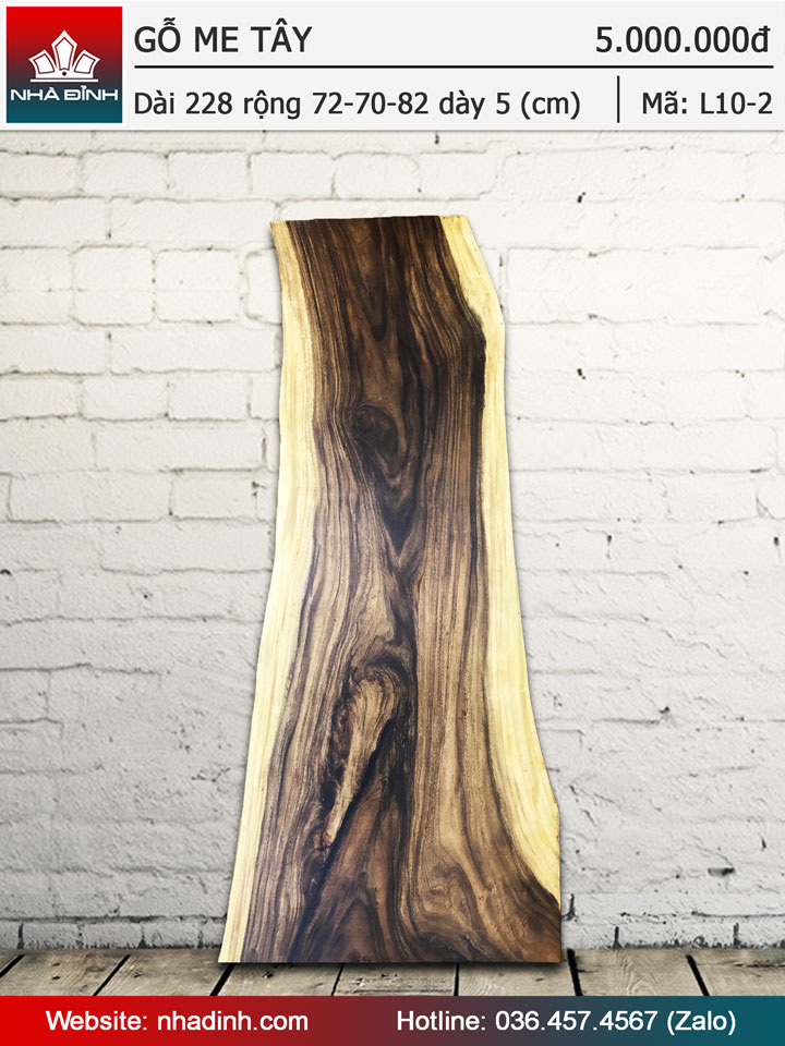 Mặt bàn gỗ Me Tây nguyên tấm dài 2m28 rộng 72-70-82 dày 5 (cm)