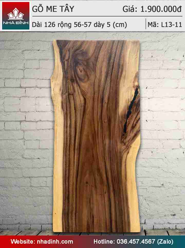Mặt bàn gỗ Me Tây nguyên tấm dài 126 rộng 56-57 dày 5 (cm)
