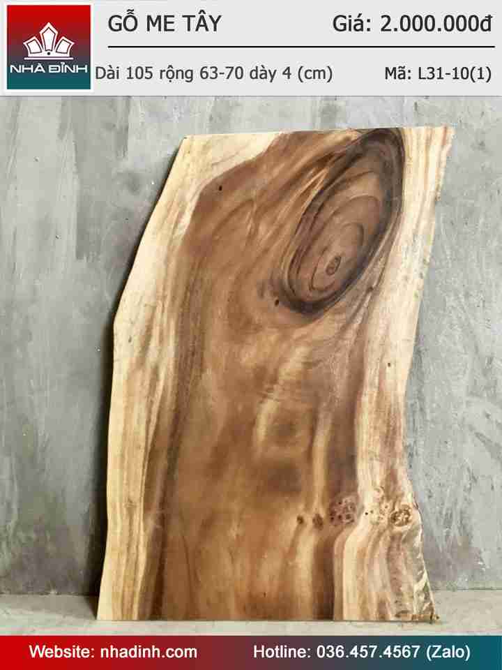 Mặt Bàn Me Tây Nguyên Khối Dài 105 Rộng 63-70 Dày 4 (cm)