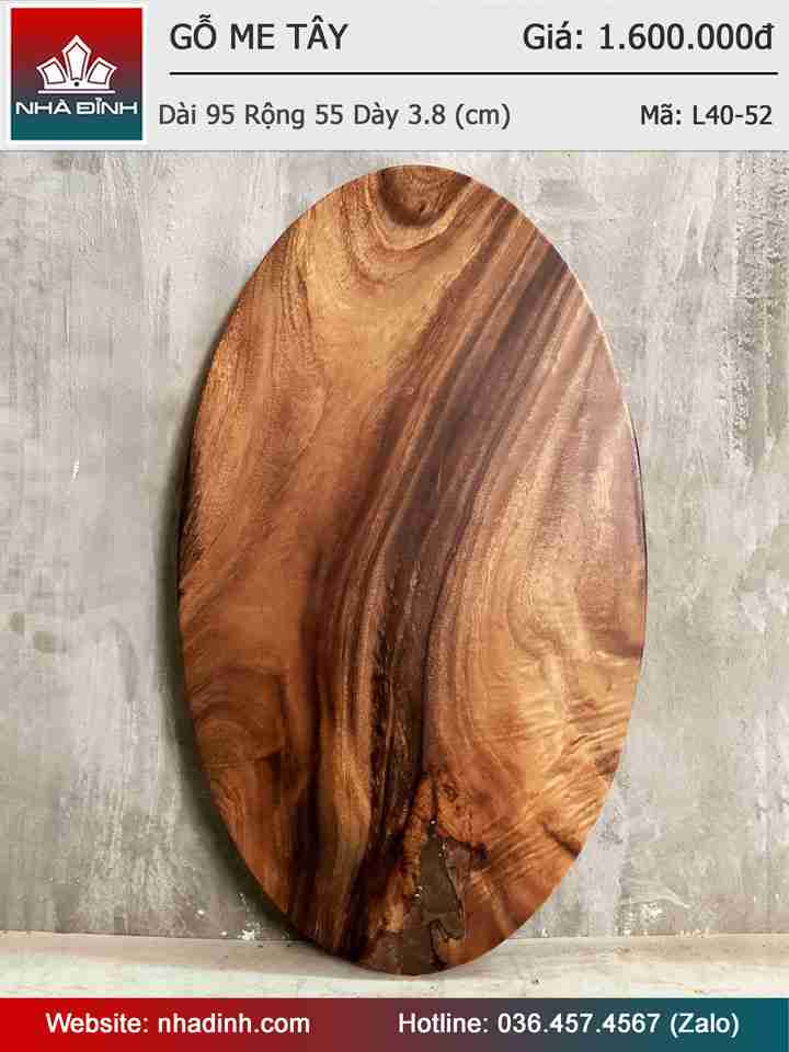 Mặt Bàn Oval Gỗ Me Tây Dài 95 Rộng 55 Dày 3,8 (cm)