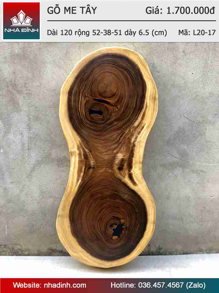 Mặt bàn Sofa, bàn Trà gỗ Me Tây nguyên khối Dài 120 rộng 52 - 38 - 51 dày 6.5 (cm)