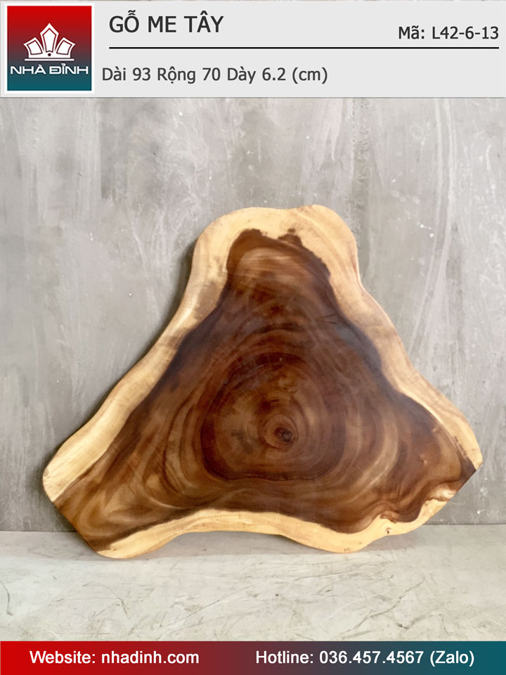 Mặt Bàn Sofa Gỗ Me Tây Nguyên Khối Dài 93 Rộng 70 Dày 6.2 (cm)