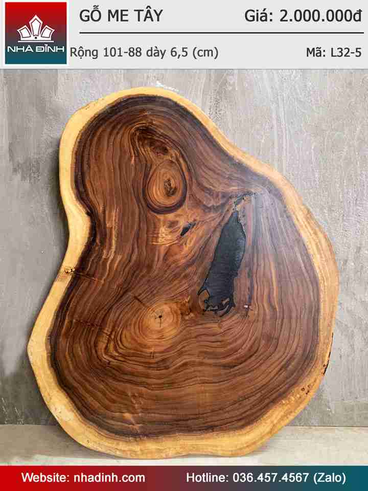 Mặt Bàn Sofa Gỗ Me Tây Nguyên Khối Rộng 101-88 Dày 6,5 (cm)