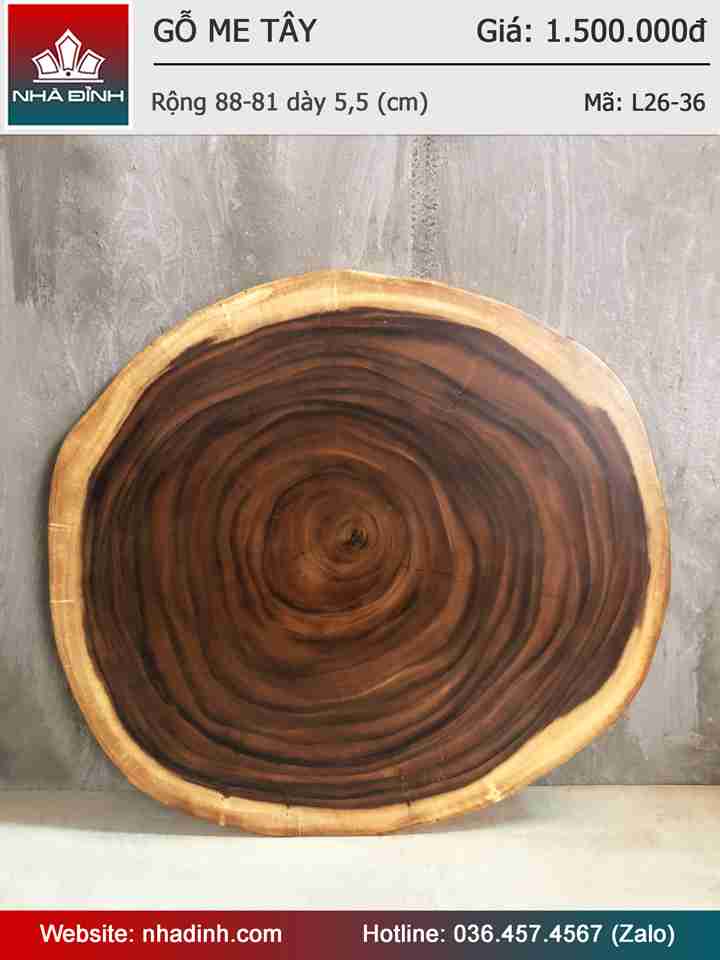 Mặt Bàn Trà Gỗ Me Tây Nguyên Khối Rộng 88-81 Dày 5.5 (cm)