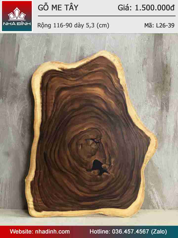 Mặt Bàn Trà Gỗ Me Tây Nguyên Khối Rộng 116-90 Dày 5.3 (cm)