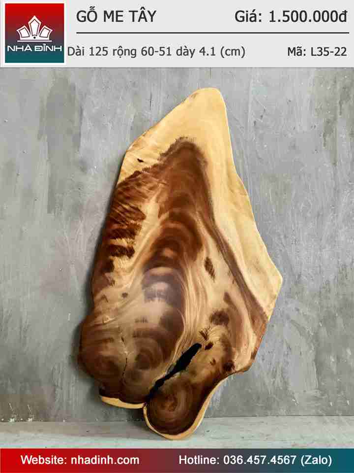 Mặt Bàn Trà Gỗ Me Tây Nguyên Khối Dài 125 Rộng 60-51 Dày 4.1 (cm)