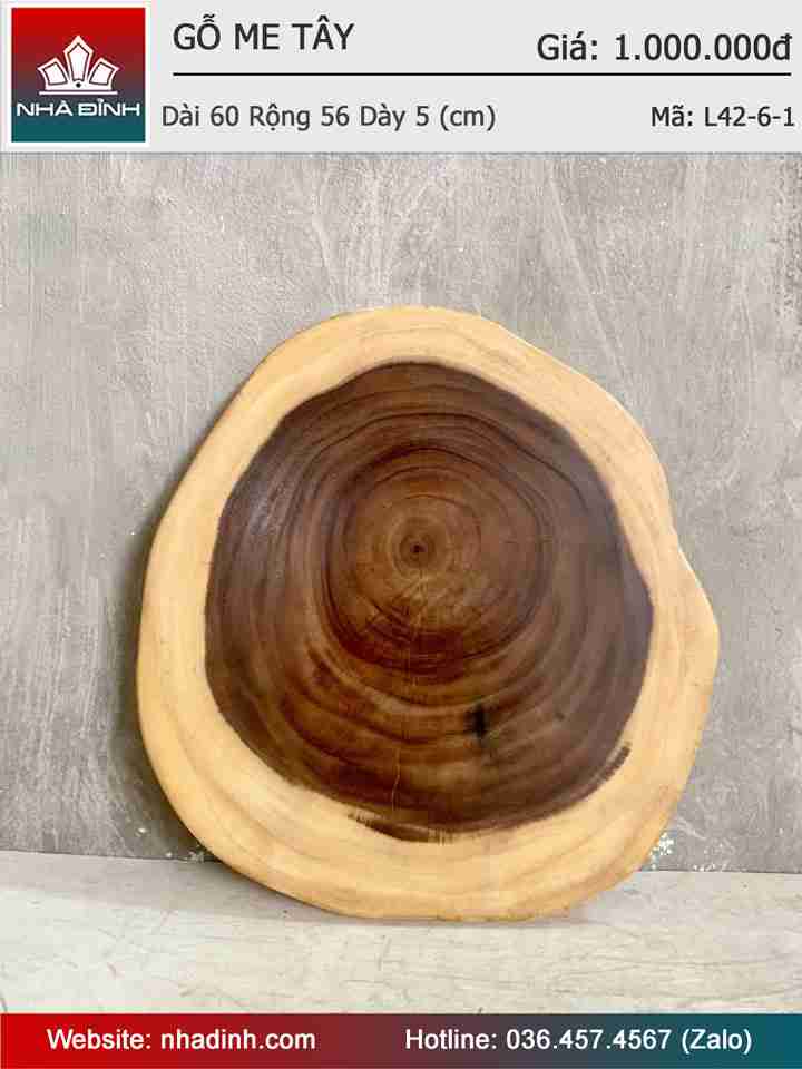 Mặt Bàn Trà Gỗ Me Tây Nguyên Khối Dài 60 Rộng 56 Dày 5 (cm)