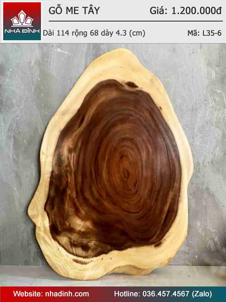 Mặt Bàn Trà Gỗ Me Tây Nguyên Khối Dài 114 Rộng 68 Dày 4,3 (cm)