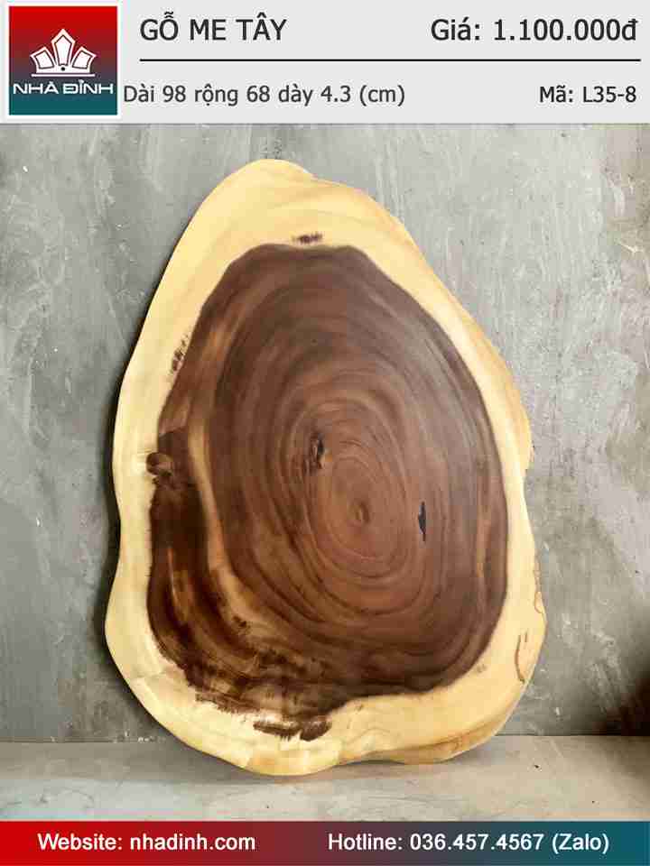 Mặt Bàn Trà Gỗ Me Tây Nguyên Khối Dài 98 Rộng 68 Dày 4,3 (cm)