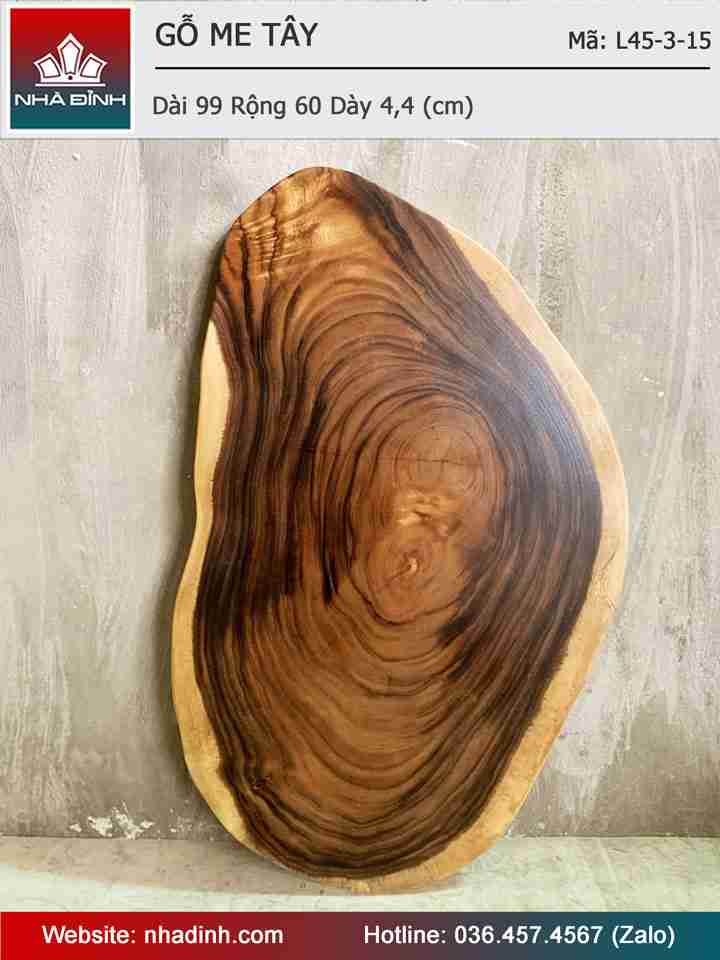 Mặt Bàn Trà Gỗ Me Tây Nguyên Khối Dài 99 Rộng 60 Dày 4,4 (cm)