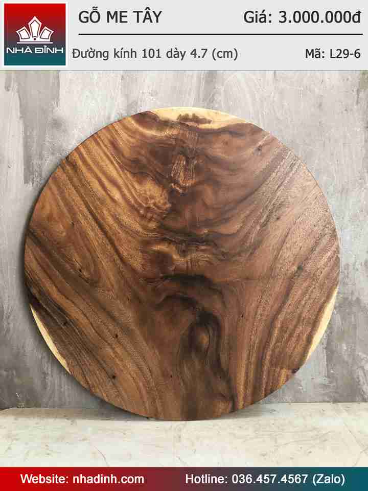 Mặt Bàn Tròn Gỗ Me Tây Nguyên Khối Đường Kính 101 Dày 4,7 (cm)