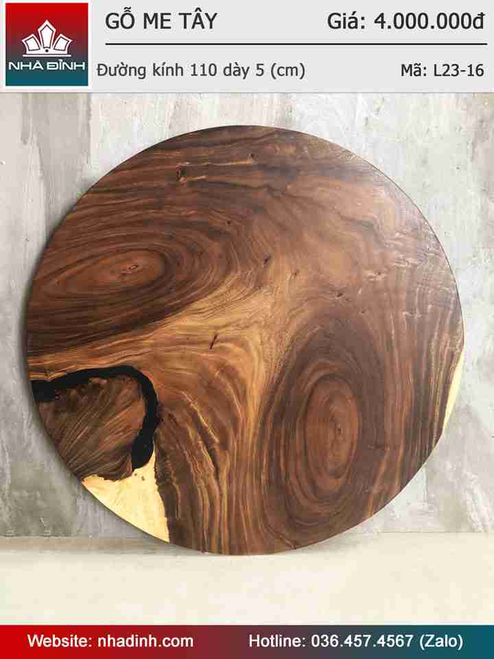 Mặt Bàn Tròn Gỗ Me Tây Nguyên Khối Đường Kính 110 Dày 5 (cm)